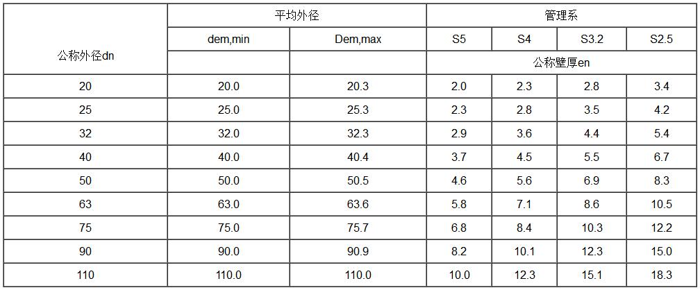 內(nèi)徑系列管材的尺寸dim,min 執(zhí)行標(biāo)準(zhǔn)GB/T18742.2-2017單位:mm